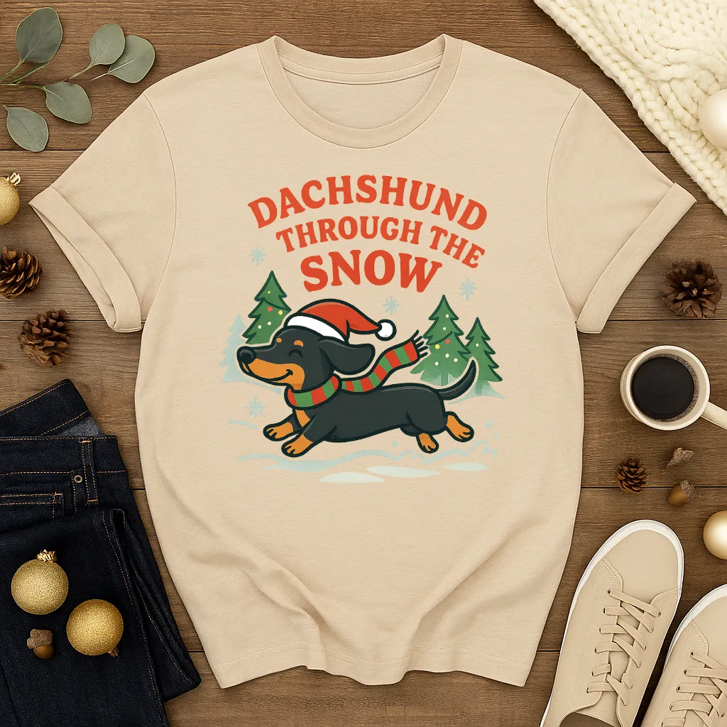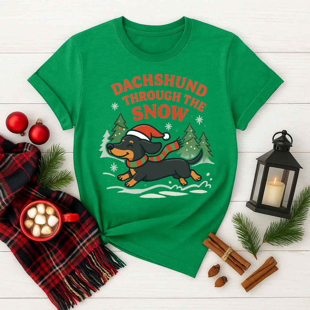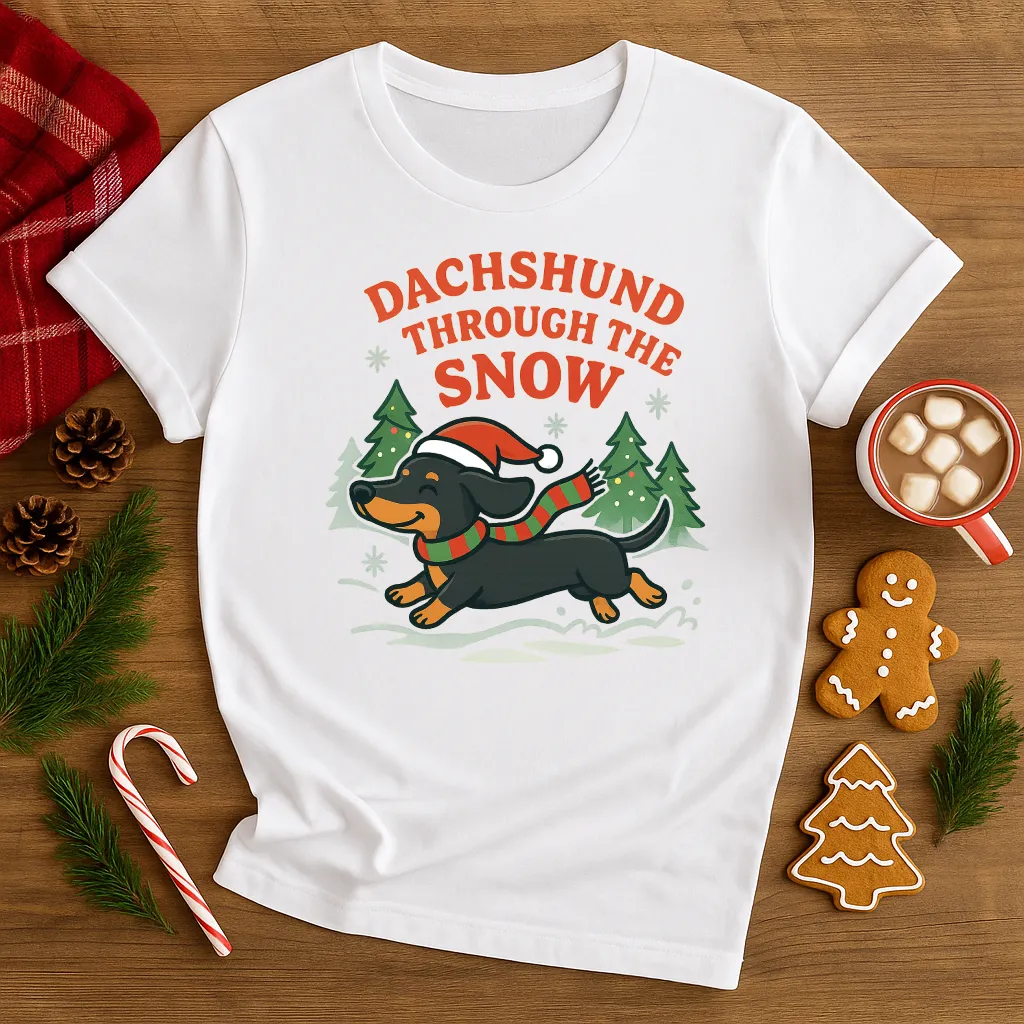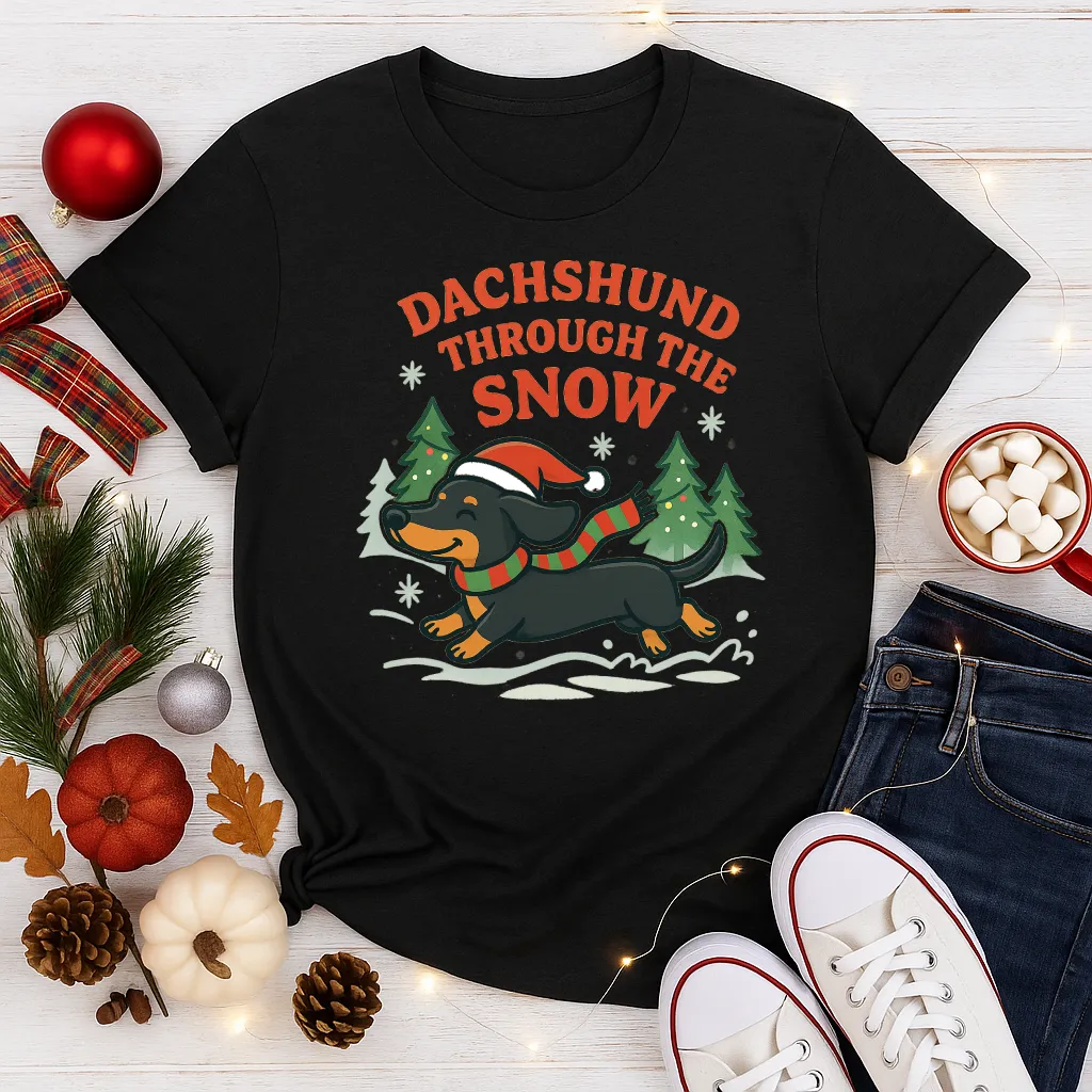 Celebrate the holidays with a dash of humor and puppy love 🐾❄️ This Dachshund Through the Snow Christmas shirt features an adorable wiener dog wearing a Santa hat and scarf, dashing through the snowy trees. Perfect for dog moms, dog dads, dachshund owners, or anyone who loves funny holiday puns. Ideal for Christmas parties, cozy nights in, or as the paw-fect gift for pet lovers!