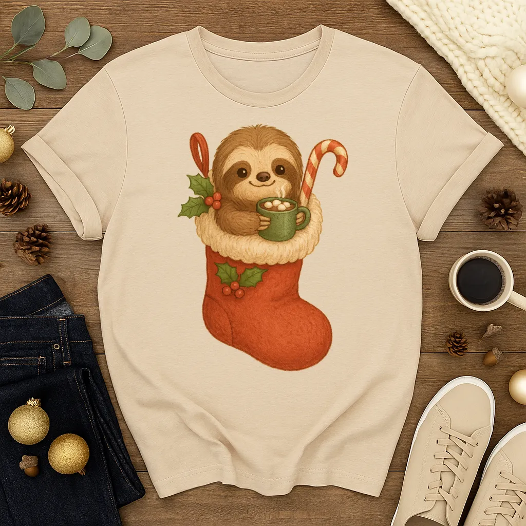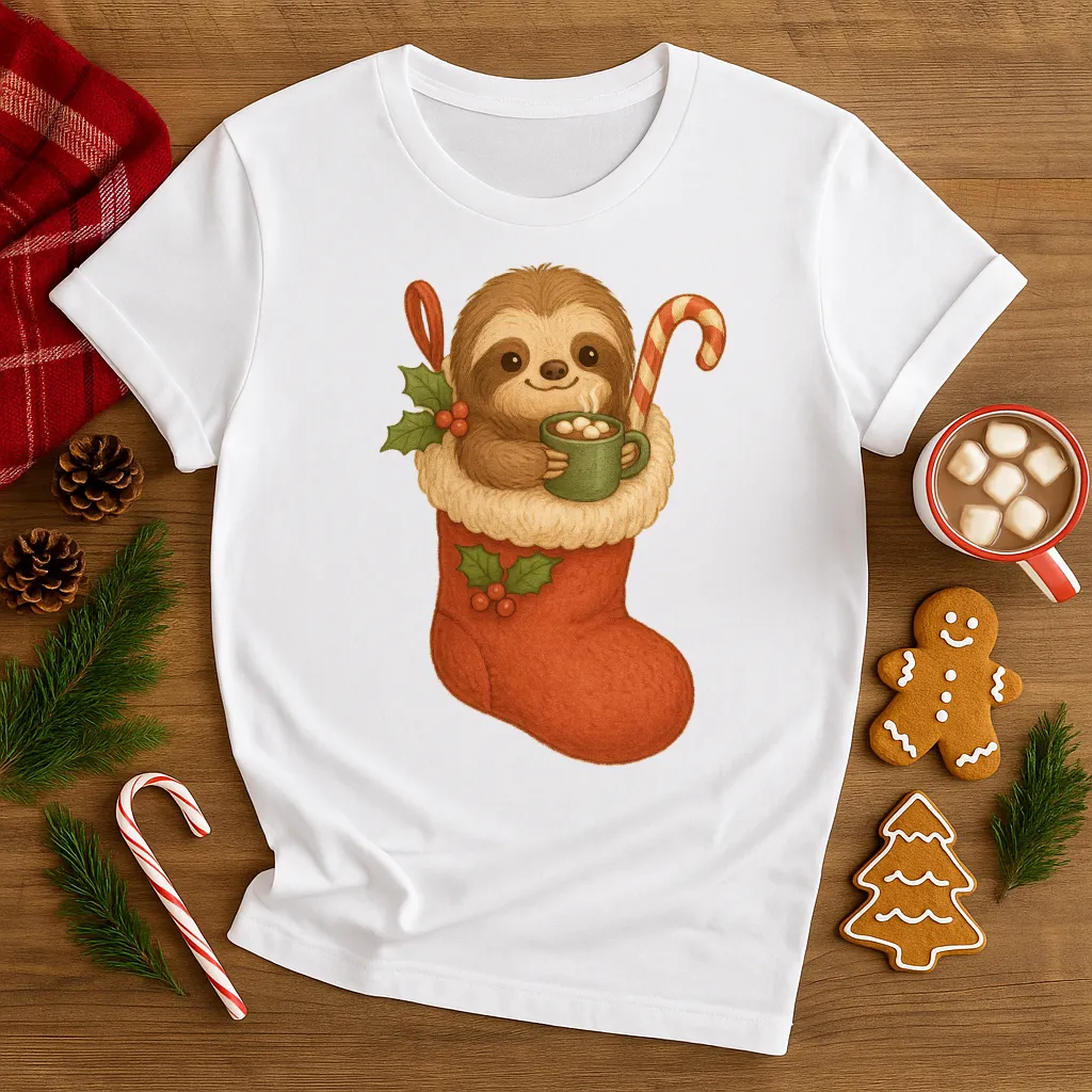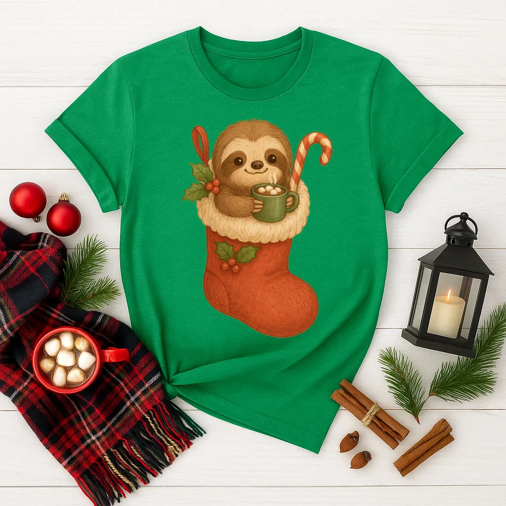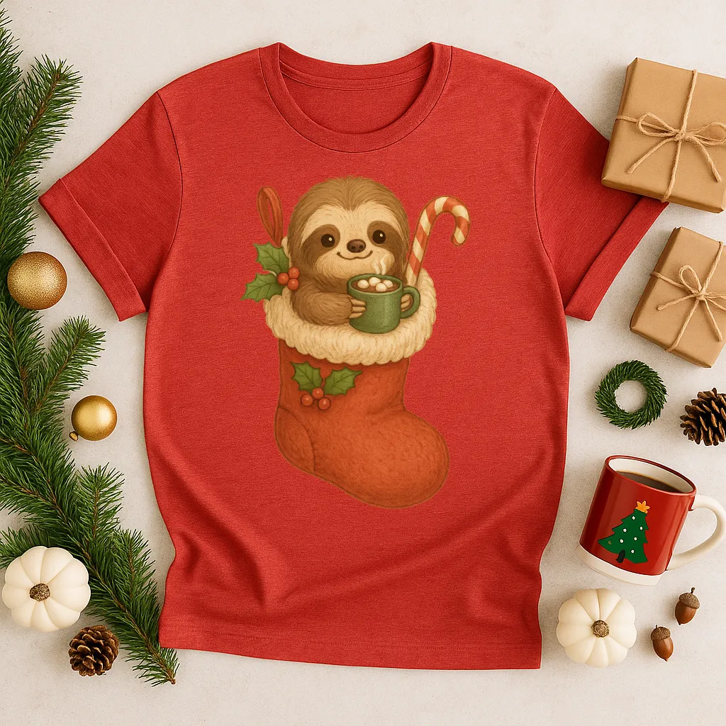 Get ready for the coziest holiday season with this adorable Sloth in Stocking Christmas shirt 🦥🎅✨ Featuring a sweet sloth snuggled in a festive red stocking with a candy cane and hot cocoa, this tee is perfect for Christmas morning, holiday pajama parties, or just sipping cocoa by the fireplace. A must-have gift for sloth lovers and anyone who enjoys cute and festive holiday fashion!
